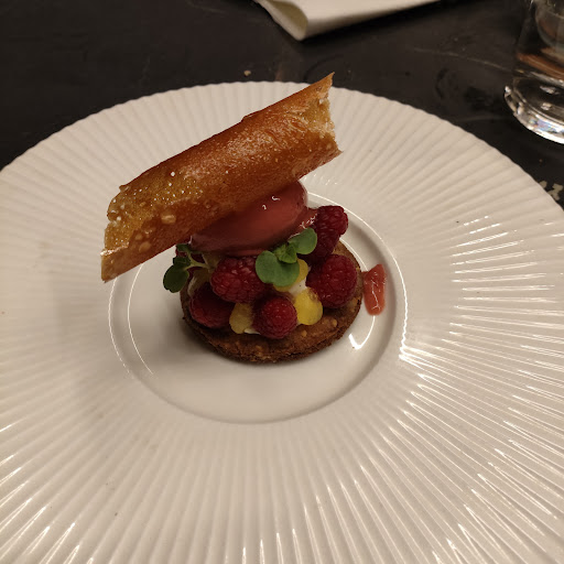 Des possibilités extraordinaires gâchées … Un résultat décevant et aucunement à la hauteur des tarifs pratiqués. Nous venons dîner en ayant réservé. La table à proximité de nous nous met directement dans une ambiance étrange que nous ne recherchons absolument pas. Ton qui hausse, propos racistes, … une drôle d’ambiance pour un dîner en amoureux. On se dit que ce n’est pas la faute de l’établissement mais quelle surprise quand le patron s’assoit finalement avec eux, signe qu’il les connaît. Pendant que le serveur nous sert le vin, un autre serveur se permet de passer entre lui et nous pour tourner nos verres avec un dédain certain. Les entrées arrivent. De bons produits cuisinés de manière « lambda » sans aucun lien entre les différents éléments, tolérable à condition de ne pas être regardant sur la cuisson de l’œuf (dommage d’annoncer un œuf mollet quand la cuisson est ratée). Bien décevant mais ce n’est que l’entrée. Passons au plat, bon mais sans créativité, sans ce petit twist qui vous fait comprendre pourquoi vous payez ce prix. Et à ce prix, ne vous attendez pas à manger chaud… J’imagine que vous n’êtes pas pressés de manger le dessert car quelques 35 minutes d’attente sont nécessaires. Au moins il y a de la créativité dans le dessert me direz vous. Ananas et carotte avec une coque en sucre d’une épaisseur étonnante. Je vous conseille de vous abstenir. L’ambiance est sauvée par une déco sympa. Enfin, évitez de demander la carte des digestifs si vous êtes une femme car Julien interviendra en s’adressant uniquement aux hommes et fermant la carte sous vos yeux si vous êtes une femme. Vous ne saviez pas que les digestifs étaient réservés aux hommes ? Moi non plus. Après plusieurs « Santé Bonheur » bien trop amicaux et déplacés il sera temps de payer cher pour ce moment moyen. Il y a du potentiel mais ni la cuisine ni le service approximatif et froid ne suivent. À ce prix, vous trouverez mille fois mieux ailleurs...