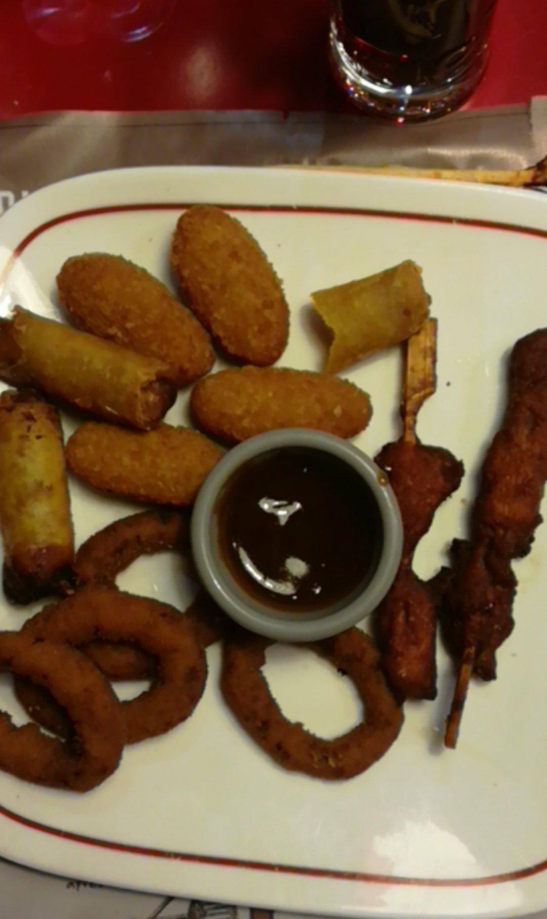 10 min aprĂšs les plats arrivent, c'Ă©tait plutĂŽt rapide, et lĂ .... euh.... Le burger fish de madame Ă©tait plutĂŽt sympa malgrĂ© le fait qu'une sauce blanche l'accompagnait au lieu de la sauce roquefort demandĂ©e initialement mais passons... Mais l'assiette de mixtapas ???!!!! Comment dire? ?? Ce sont des oignons rings censĂ©s ĂȘtre dorĂ©s, ils Ă©taient marrons foncĂ©s, comme s'ils avaient Ă©tĂ© cuits plusieurs fois dans une huile dĂ©gouttante... Les petites brochettes de poulet thĂ©oriquement caramĂ©lisĂ©es par la sauce barbecue Ă©taient ultra sĂšche ( comme un jambon cru conservĂ© depuis des mois qui laisserait ressortir tout son sel) HonnĂȘtement ? C'Ă©tait pas bon alors que c'Ă©taient de simples tapas... J'ai vraiment eu l'impression d'avoir eu l'assiette qui n'avait pas Ă©tĂ© vendue depuis 1 semaine... Vraiment...