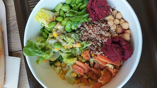 Read moreCalme, diversité de plats, certes le prix est un chouia élevé mais ça vaut l'originalité (pour ma part salade avec de la patate douce, des fèves du quinoa du pois chiche et de la fève entre autres) bref pile ce que je cherchais à ce moment là. Des petits trucs en plus : utilisation de contenants durables (Tupperware en verre) même si du jetable est encore utilisé.l'équipe se réunit de manière conviviale en fin de service,...