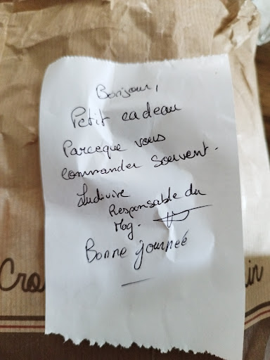 Read moreil est 12h40 Aucun clients dans la boutique mais on doit attendre 5 min dire bonjour 3 fois dans le vide avant que les jeunes derrière rigole à rien faire parceque oui, nous on vous voit ! Viennent s'intéresser à vous au moment ou vous décidé a partir inadmissible ! Il est évident que je suis allé chercher mon pain ailleurs du coup . Le clients pour moi n'est pas roi mais faut pas le prendre pour un...