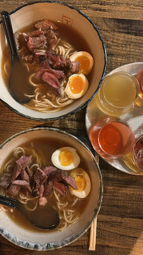Sommes allés déjeuner mon conjoint et moi, pour goûter le fameux ramen au canard plébiscité sur instagram. Nous nous sommes littéralement régalés, le ramen était délicieux, un pur régal. Le bouillon etait plein de senteur, les nouilles parfaitement cuites, le canard grillé avec cuisson parfaitement maîtrisé. Et le tout avec des produits locaux et de qualité. Le patron est très accueillant. J'ai pris une bière à la framboise, que dire j'ai adoré (faite avec 25% de fruit !!!). Vous pouvez y aller juste pour boire une bonne bière, il y a du choix. J'ai fini par une glace maison pêche/groseille.... c'est vraiment une tuerie !!! . Nous reviendrons...