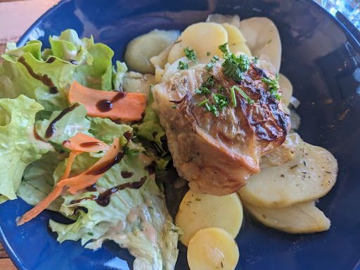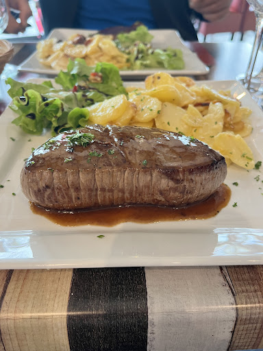 Arrivées "là par hasard", on ne regrette pas notre arrêt ! Tout d'abord, nous avons été accueillies avec le sourire, dans un restaurant très bien tenu et très agréable. Ensuite, le chef nous a conseillé un magret de canard, sauce aux champignons, avec gratin dauphinois et salade. Nous nous sommes laissées convaincre, et avons été emportées par un tourbillon de vraies saveurs, ce sont des produits de qualité, travaillés avec talent, et ca se retrouve dans l'assiette (très bien garnie !) En dessert, tarte aux pommes ou glace, des produits simples, frais, et delicieux ! Côté financier, rien à redire, le prix est raisonnable, vu la qualité des produits et...