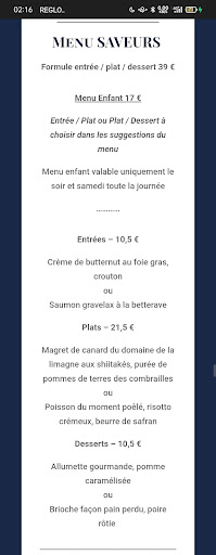 Tout d'abord, le menu du soir indiqué sur le site n'est pas le même que celui auquel nous avons été confronté. S'il est bien indiqué pour le menu du midi qu'il est donné à titre d'exemple et sujet à changement en fonction des arrivages, rien de ce genre n'est indiqué pour le menu du soir. Or, le menu que nous avons eu ce soir était bien moins alléchant que celui présent sur le site internet...mais le prix, lui est resté inchangé ! Nous sommes donc passé de deux propositions en entrée avec de la viande à deux propositions à base de légumes, bien moins chères à réaliser... La sainte inflation est probablement passée par là, mais il faut reconnaître que la surprise fut désagréable... 😅