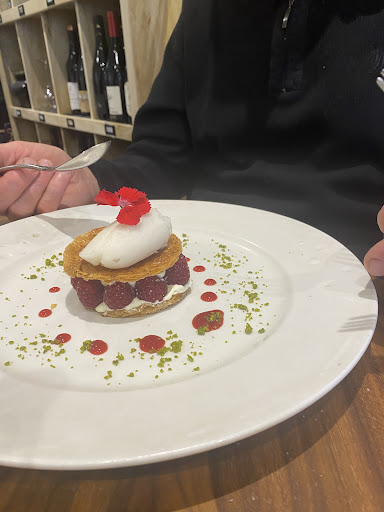 Read moreUne déception du début à la fin… nous avons l’habitude de fréquenter les restaurants ayant un un Bib au Michelin et c’est la première fois que nous sommes déçus. En apéritif, 2 spritz, 1 mojito et 1 mojito sans alcool, tous mal dosés et simplement pas bons. Même pas une olive pour les accompagner. Mes Saint-Jacques qui devaient être servies avec des artichauts poivrades ont été servies avec un risotto mal fait (ma grand grand mère italienne doit se retourner dans sa tombe) et le tout insipide. Mon mari et mes fils ont choisi les ris de veau, très décevants aussi, frits et non dénervés. Aucune saveur, à part le goût de la friture. Quant aux desserts, nous avons continué sur la même lancée, 2 Paris Brest moins bons que chez notre boulanger et 2 mille feuilles insipides. La serveuse a été incapable de nous conseiller un vin, heureusement celui que nous avons choisi était correct… Ma belle fille a retrouvé un morceau d’aluminium dans sa brioche perdue aux fraises… nous n’avons pas voulu en faire état car nous voulions fuir le plus vite possible. C’est la première fois que je mets un avis aussi défavorable, mais le dîner a du...