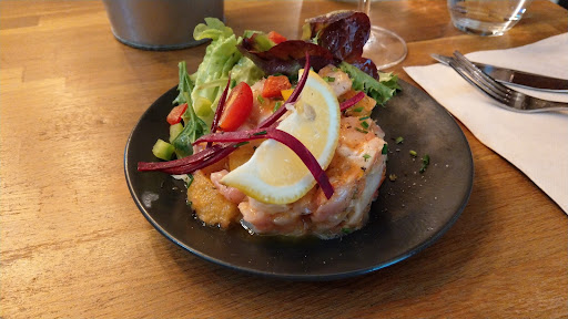 On the search for a place to dine, I stumbled upon this stylish place. Being quite early, I managed to get one of the few free tables (reservation recommended!) and ordered the menu with 3 small tapas-style dishes plus side dish and dessert. The Argentinian white wine was refreshing, smelled delicious and went well with the ceviche. But the highlights were certainly the "morceau du 'Cornicero'" - beef in my case -, the caponata side dish and the gazpacho. The quality and taste of the food and the great background music were only topped by the quality of service by the friendly waitress and her excellent recommendation for the red wine I had with the beef. In case you're not at the edge of starvation, I recommend to replace the dessert with a coffee or digestif as the menu is quite substantial and definitely worth every cent. If you prefer smaller portions, just have one or two of the dishes instead of the menu and you'll be fine. So, definitely I great place to...