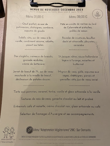 Great restaurant at Clermont. I’m delighted with the service and the level of the menu. They offer 2 different menus with 2 possible starters and main dishes as well as an open menu. They change the dishes every month to match the season Ingredients. We chose œuf parfait as starter with butternut pure and seafood ravioli with mushrooms. As main dish we took the bœuf cooked 7 hours with sweet potato pure and mustard and the mignon de veau grilled with chataignes and an amazing sauce with mushrooms. Both of them soft, perfectly cooked and tasty. As a dessert we took the entremets cafe te noisitte, which compared to the rest was less special and the pain perdu with brioche and an amazing caramel and vanilla ice cream. Definitely I will come back to try a new menu 😇 And booking is a must as they...