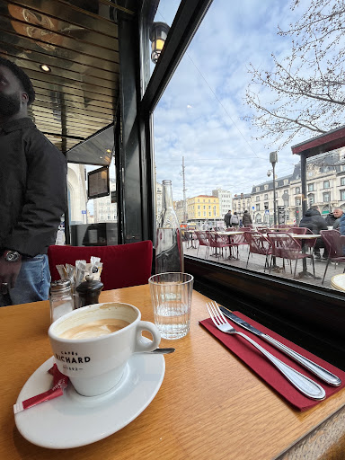 Read moreI had a pleasant Sunday lunch here the waiter was very warm and friendly with me and his regulars. I enjoyed an onion soup and side salad, a café crème and a hot chocolate. I sat in the front inside seating area and I was very warm and comfortable and could look out onto Jaude. I would...