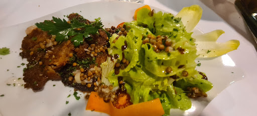 Read moreNous sommes allés à 5 sans réservation et avons pu avoir une table. Nous avons pris 3 menus à 32€ et 2 à 25€. Le menu le plus cher, avec les trois morceaux de gravlax de saumon perdu dans l'océan de salade mariné avec un trop plein d'huile, ce qui était dans le thème avec notre table bancale qui nous rappelait les vagues sur un bateau en pleine mer. Le plat, l'araignée de porc, avec trois morceaux qui se battent en duel, c'est abusé pour le prix. Cependant, la sauce aux cèpes était bonne. La truffade n'était pas mauvaise mais le cuisinier à du faire tomber la gousse d'ail entière. Pour ce qui est du ''plateau de fromage'', c'est plus une assiette avec trois morceaux de fromages à moitié sec. Les desserts étaient ok. En finalité, tout est trop cher pour le peu de qualité et quantité, j'ai la sensation de m'être faite arnaqué, je ne...