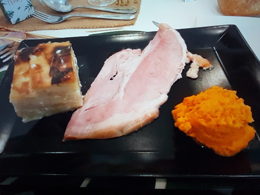 Très belle surprise... Très bel endroit,on se croirait à la maison tellement c est douillet... Pour le repas du midi nous avions tous pris truffade, moi ne mangeant pas de porc j ai eu droit à une succulente cuisse de poulet en remplacement du jambon cru de pays..Donc le service est très conciliant et s adapte en trouvant vite une solution de rechange ce qui m a permis de profiter de leur EXCELLENTE truffade...très bien servie... Nous avons eu droit en amuse bouche,à un petit velouté de champignons à tomber par terre. Un grand merci pour cette qualité de services et pour votre gentillesse.. Je recommande a 1000 % si vous passez...
