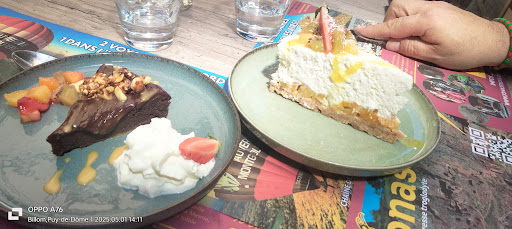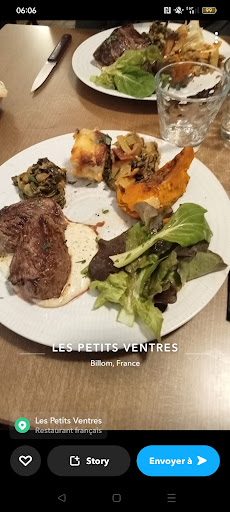 Avis de Chraz : "Quelques photos des super plats et desserts du resto "Les Petits Ventres" à Billom, où on est allé hier soir pour la... euh... 20ème fois (?). On s'y pointe été comme hiver après avoir prudemment appelé vu qu'il n'y a pas toujours de la place (on habite à 1/4 d'heure et on ne compte plus) et c'était super chouette, comme d'habitude. Outre de nombreuses critiques élogieuses sur Trip Advisor et à divers endroits sur le Ouèbe, on peut aussi en lire des assassines, souvent en copié-collé pour bien marteler la démolition. J'ai vu notamment celle d'un certain "meilleuuuur ouvrier de France" apparemment pas mal classé non plus chez les pénibles, je voudrais donc rendre un double hommage aux adorables tenanciers du lieu (que ça empêche un peu de dormir alors qu'ils bossent déjà de 7h du mat à minuit ou dans le genre, on en a parlé). Non seulement ils servent des plats de qualité (voir photos non trafiquées avec Photoshop) mais ils permettent en plus à des pisse-froid de se défouler pour diverses raisons que je ne peux pas analyser, n'ayant aucun diplôme psy. Ils méritent autant pour leur rôle culinaire que pour celui de soupape. Est-ce d'ailleurs pour ça que c'est souvent plein et qu'il est prudent de réserver ? Ce n'est pas impossible, la faim du ventre ne peut souvent pas rivaliser avec celle de râler, on est en France et tellement fier d'être français, acré vain Diou ! Nous, on était six, invités par des amis bretons également amoureux du lieu et qui fêtaient leur retour chez les propriétaires de voiture à "mneus", çàd en Mretagne ! Tout était très bon, du plat au dessert - on n'avait pas pris d'entrée, ça aurait fait beaucoup - en passant par le vin (d'Auvergne ! Domaine de Lachaux, pinot noir) ... sans oublier la terrine offerte pour faire patienter et la verveine itou à la fin mais avec modération. Comme quoi en se montrant compréhensif, le contact est plus agréable et les choses glissent plus facilement ? En tout cas, les sites où n'importe qui peut assassiner un lieu aussi bien pour de la véritable mauvaise qualité que pour un détail comme une assiette légèrement ébréchée, une table bancale parce qu'elle est posée sur des pavés (vivement les pieds réglables électroniquement avec télécommande !) ou le plat unique les jours de foire, ce qui est une honte, en effet !), enfin bref, ces aspirateurs à pub déguisée sur lesquels on écrit ce qu'on veut sans aucun contrôle possible... euh... faut peut-être re-la-ti-vi-ser ? Faut voir ! D'ailleurs, qui vous dit qu'on est vraiment allé aux Petits Ventres ? Si ça se trouve, on est allé bouffer des hamburgers merdiques au Mac Do de Chignat et on a piqué des photos sur Internet pour frimer ? Va savoir ! Allez, good night et bon appétit à ceux...