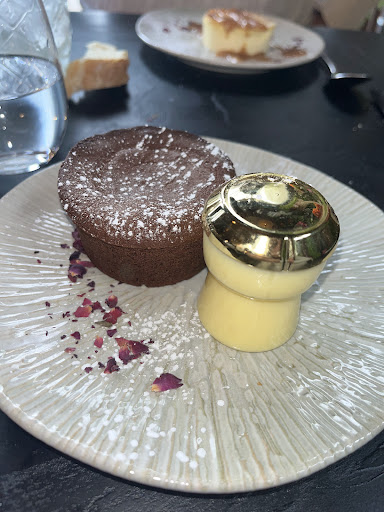 Read moreJe me suis rendu dans ce restaurant ce midi pour la première fois. J'ai pris le menu du jour. Mon entrée : tarte fine chorizo et butternut + petite salade. Bien cuite, bien assaisonnée. Mon plat : dos de lieu noir, sauce au beurre blanc et julienne de légumes. Poisson bien cuit, sauce bonne, légumes cuits. Seuls bémols : la julienne était peut-être surgelée car difficile de la tailler fraîche avec autant de précision ; j'aurais aimé un peu plus de sauce dans l'assiette. C'est pourquoi j'ai ôté une étoile à l'évaluation de la cuisine. Mon dessert : financier pistache et fruits rouges avec sauce pistache. Dessert fait maison, très bon, j'ai aimé le croustillant du financier à l'extérieur qui contrastait avec le moelleux à l'intérieur. Moi qui n'aime vraiment pas la pistache sous toutes ses formes, là j'ai bien aimé, c'est rare. Le pain était bon, vu que je n'en ai pas laissé. Le cadre du restaurant est très dépaysant, très joli. La musique d'ambiance était agréable et variée (il y en a pour tous les goûts), jamais entendu pendant un repas de midi, une première. L'équipe de service était sympathique,...