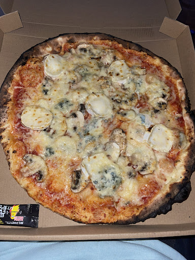 Grosse commande de 9 pizzas toutes tailles en groupe par téléphone même si on peut le faire sur leur site web qui est très bien. Commandé pizza 🍕 fruits de Mer. Je suis allé la chercher sur place en 30 minutes même si je pouvais me faire livrer gratuitement, petit plus du service. J'ai pu constater ce que le chef nous propose. J'aurais préféré un peu plus de fruits de mer pour la garniture et plus de tomates, Manque un peu plus de goût pour le fromage probablement un autre fromage plus goûteux que celui actuellement. Ça aurait été parfait. Je suis exigeant mais j'aime la nourriture savoureuse. Sinon le service et l'attention du client, c'est à la hauteur. petit plus pour la boisson offerte pour les grosses commandes et après la 10 ème pizza, la prochaine offerte. Petit bémol pour ceux qui disent que la pizza est cramé,( elle est meilleure au feu de bois, c'est normal de bien la cuire), il suffit de le demander comme pour l'ajout d'autres ingrédients qui sont gratuits comme l'origan par exemple. En espérant que le chef en tiendra compte. Je justifie par cette note 4 sur 5. J'ai aimé le feu de bois c'est...
