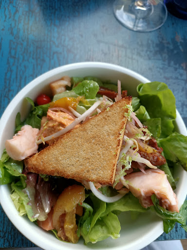 Arrivés au restaurant, la réservation a bien été respectée, nous sommes placés sur une table au fond de la salle, salle très bruyante, dommage car le cadre est plutôt agréable. La serveuse nous amène un grignotage offert, tapenade et mini croûtons de pain, servis dans des verres style cantine scolaire...pas pratique ni pour attraper la tapenade, ni pour l étaler car les croûtons sont vraiment riquiqui..commande d un plateau de fruits de mer, trois huîtres promises, une seule arrive, les deux autres arrivent dix minutes après sur une assiette a part... Crevettes grises gorgees d 'eau. Plats commandes: thon teriyaki accompagné de riz et de petits légumes: le teriyaki absorbe tout le goût du poisson, en fait de petits légumes, du chou fleur et des navets, et riz pas assez cuit. Choucroute de la mer: aurait pu être correct, sans plus, si n'avait pas été accompagnée de cette sauce qui est visiblement servie avec tout les plats, au goût de tomate très prononcé qui ne se marie ni avec le chou ni avec les crustacés. La serveuse bouscule l étagère derrière laquelle se trouve notre table, ce qui fait bouger la table et manque de faire tomber la bouteille de vin, mais ça n'a pas l air assez grave pour elle pour prononcer des excuses aimables. Nous sommes obligés de réclamer de l'eau, et on nous demande si on désire du pain (une corbeille n est appartement pas automatiquement amenée).