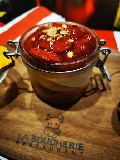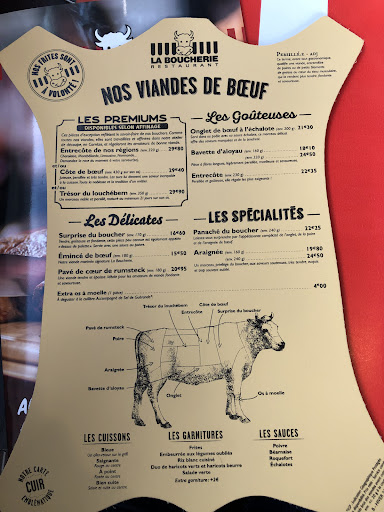 Read morePlutôt déçu, bien longtemps que nous n' avions pas mangé dans cette boucherie. Nous pensions trouver comme avant et comme la plupart des enseignes boucherie une qualité de viande irréprochable et un service dynamique et sympathique . Quelle déception 🙄 Une serveuse pas très souriante pas désagréable non plus on va dire que ce n'était peut être pas son jour ...ça peut arriver 😉. Après avoir réfléchi à ce que nous voulions manger nous voilà prêt à passer commande et la... rupture de la tartiraclette il faut choisir autre chose, sauce reblochon pour accompagner les viandes, "désolée il nous en reste peu on la garde pour les personnes qui commanderont des hamburgers alors merci de choisir une autre sauce". Déçu de ne pas avoir su avant notre choix qu'il n'y avait plus de tartiraclette ,étonné qu'on nous refuse la sauce reblochon alors que pour des hamburgers c'est possible... Et au moment de se régaler, , salade césar 3 morceaux de poulet frit et 7 morceaux de fromage râpé ,2 pièces du boucher plutôt petite et surtout pas très tendre par rapport à la qualité habituelle et le rumsteak du menu (je ne sais plus le nom celui avec le tarif le plus élevé) est arrivé saignant comme demandé mais froid vraiment froid.Une grande salade de chèvre chaud oui beaucoup de salade 3 tartines avec du chèvre 2 boules de fêta et une noisette ouhaou heureusement il y avait beaucoup de salade verte 🤣 la hampe parfaite . Sur 6 personnes on va dire 2 plats bien et 4 plats qui ne donnent pas envie de revenir. Et pour le service d'eau à table je me suis levée 2 fois pour aller chercher une carafe sur le comptoir. Vraiment déçu la prochaine fois sur Clermont Ferrand nous ne choisirons pas l'enseigne de la boucherie. Tarif excessif pour la qualité des produits et...