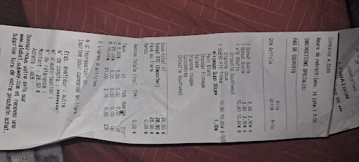 Un effort commercial aurait dû être fait. Il faudrait vraiment revoir ce système de panier (un simple plateau ferait l'affaire.)