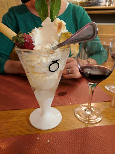Friendly service from a waitress who was more than happy to attempt English. Quiet atmosphere, civilised but not uptight decor. We had the cheaper entree + plat option, great value for money. The pork terrine was a huge helping, must have, and then the chef's dish of the day which was a thin rump steak with frites and pepper sauce, at medium rare it was tender and flavoursome. For dessert one simply must have their fancy ice creams, comes with some sort of sweet whipped cream, one serving is...