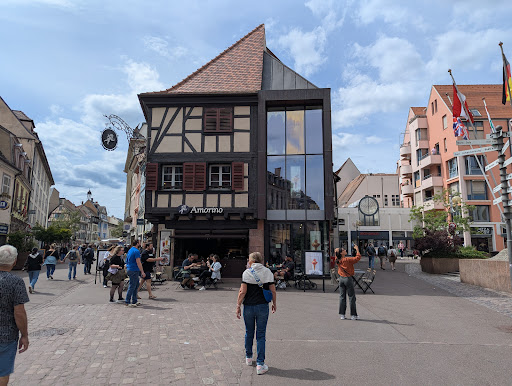 Meine Rezension bezieht sich in diesem Fall auf das sehr interessante teil-historische Bauwerk und nicht auf den Eissalon, dessen Eis ich jedoch aus einer anderen Filiale kenne und zu schätzen gelernt habe. Das Bauwerk ist in dem Sinne äußerst interessant weil es durch seine bauhistorisch extrem gegensätzlichen Elemente, die es in der Hälfte spalten auch wiederum eine Vereinigung darstellt und zwar zwischen dem alten historischen Colmar und dem neuen Colmar und zwar mit der jeweils dem Stadtteil entsprechend zugewandten Seite, was ich versucht habe fotografisch festzuhalten, aber mit etwas mehr Aufwand, Zeit und besserem Auge mit Sicherheit noch besser...