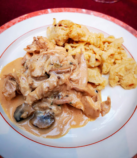 Read moreL'accueil est toujours agréable mais la suite est tout autre. Le vin était pas bon, c'était un Fitou imbuvable. L'entrée escargot était bonne mais le plat l'escalope de veau était dure et pleine de nerfs. J'ai donc fait la remarque au patron qui m'a dit que ça arrivait des fois 😟. Il nous a proposé de la choucroute à la place que j'ai refusé. On s'est dit bon allez une tarte flambée gratinée à la place mais celle ci immangeable. Les lardons quasi inexistants , une tonne de fromage sans goût, bref au final , on aura mangé que l'entrée et les tartes flambées sont retournées en cuisine au 3/4. Nous pensions que un geste serait fait mais rien. On avait prévu de leur demander si un repas de Noël pour 20 serait possible, et bien on ira le faire ailleurs.