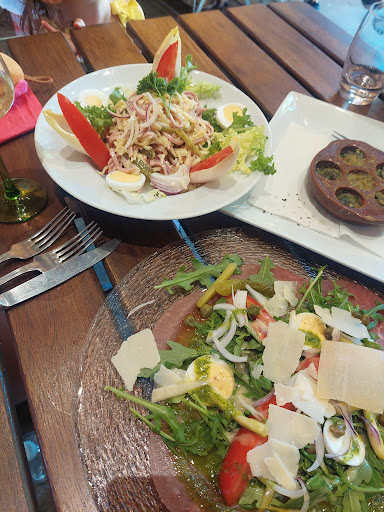 Ich hab alles auf französisch versucht auszudrücken. Sie war weder gewillt mir zu helfen noch kam mal ein Lächeln oder sonst irgendeine nette Geste. Ich hätte gern noch ein Wasser bestellt zwischendurch aber die Bedienung hat uns krass ignoriert bzw. ist nur an uns vorbei gegangen.