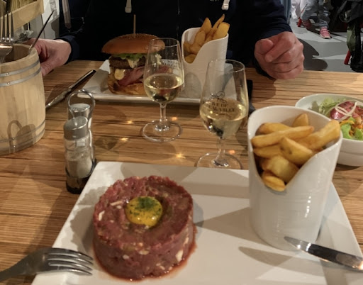 Read moreSuperbe village, superbe petit resto dans une cave le long des remparts, grand parking à proximité. L’endroit est presqu’intimiste ( réservation obligatoire pour une table à l’intérieur). Toilettes très très propres! C’est important également ! Serveurs sympas, souriants, attentifs aux désidératas des clients, actifs et réactifs. Une carte variée, juste comme il faut! De bons petits vins alsaciens. Ambiance chaleureuse, décontractée. D’emblée, on s’y sent bien ! Nous avons mangé un double hamburger alsacien ( le meilleur des meilleurs !), un tartare de bœuf ( exquis), servis avec salade fraîche ( pas en sachet!), frites maison excellentes ( nous sommes belges… donc… 😉). Un sorbet framboise arrosé et des profiteroles (?). Tout était DÉLICIEUX et COPIEUX ! Addition : 90 euros pour 2 personnes.