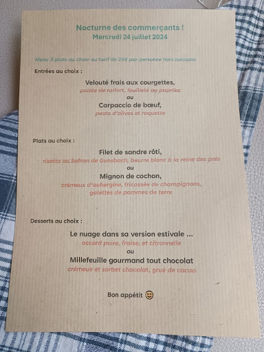 La carte est courte, avec quatre entrées, quatre plats, quatre desserts et un menu enfant. Ne prêtez pas attention aux quelques photos de choucroute ou de gros morceaux de viande en sauce qui apparaissent encore sur Google. Ces plats sont ceux de l’ancien restaurant !