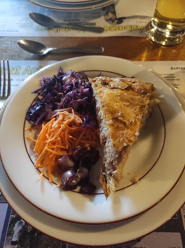 Read moreUn élevage de touristes dans toute sa splendeur. Quelle surprise en arrivant de voir le prix du menu ( tout simple) fixé a 28euros Ah mais au prix la ça doit être délicieux nous nous sommes dit. Hé bien n'importe qui ferait pareil voire mieux quel intérêt de venir dans ce restaurant ( cantine ) ? Aucun produit local ( ah si le kirsch ), que du METRO ou similaire, a peine cuisiné, fade au possible. La tourte sans goût. Dans les tofailles on cherche encore le beurre et les oignons ( c'est pourtant si simple à cuisiner ). Et la tarte au myrtilles, bien industrielle, bourrée de sucre et sans saveur particulière. En définitive le menu vaut la moitié de son prix. Établissement a fuir sauf pour ceux qui ont trop d'argent et...