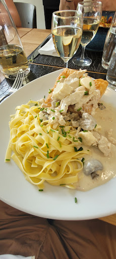Tarte flambée et escargots en entrée. La tarte flambée est bonne, mais les 12 escargots à 16€ sont tous petits. Les pizzas passent, le magret et le veau sont bons... mais servis en 6 morceaux de 15-20g bien étalés en longueur dans l'assiette, accompagné d'un ramequin de légumes surgelés et un cornet de frites surgelées, à 21€ l'assiette ça laisse une impression pas très agréable (rien à voir avec les 2 photos de viande servis tranchés qu'on peut voir ici). Le carpaccio ne laissera pas de bon souvenir non plus, le 1er semblait cuit par la vinaigrette de la salade posée directement sur la viande, le serveur proposera un autre avec salade à part. Mais finalement non, c'est la viande qui n'est pas bonne. Le serveur ne le comptera pas dans l'addition, c'est tout à son honneur.