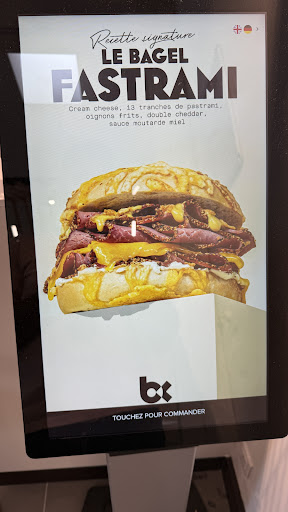 Read moreParfait ! Si vous voulez mangez quelque chose de bon et cela rapidement (même très rapidement), je vous conseille ce lieu ! À l’arrivée, vous devez commandé votre plat sur des bornes, ce qui permet une meilleure visualisons des menus ainsi que de la gestion de votre commande. De plus, cela évite un attroupement autour du comptoir. 3 minutes après avoir commandés, nous étions servis :) Les bagels était vraiment bon, le pain bien aéré, c’était parfait ^^