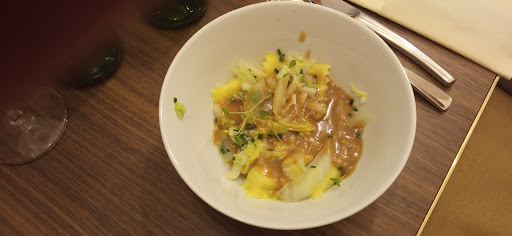 La cuisine est tout simplement excellente : des produits frais, des assiettes raffinées, des saveurs parfaitement équilibrées… Chaque plat est un petit chef-d’œuvre, aussi beau que bon. Mention spéciale à la Raviole de Langoustine, au Porc Pluma. Sans oublié la rose de Colmar qui est une touche de grâce sucrée qui va ravir tout les palets. Une carte des vins fournit en grand nom et grand crus qui sublimeront parfaitement le repas.