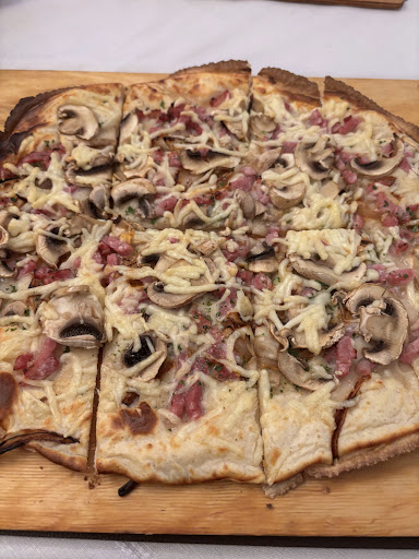 Les repas sont très copieux et bien cuisinés, la carte offre assez de choix pour tous les goûts. Les prix sont raccord avec l'inflation actuelle....mais comment y échapper ? Les tartes flambées sont... rondes ?