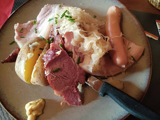 This is an authentic and wonderful restaurant serving super delicious Alsatian food. We went once for dinner and it was so good we returned the evening after. Chef Helmut's jambonneau was excellent. Moist, flavourful, and goes so well with the Munster cheese. The baeckoff was also really delicious. Their tarte flambees were also the best we have tried in the week we were in Alsace. For desserts, the creme brulee was lovely. Beyond food, service was also lively and personal. Of all the busy villages, Chez Helmut was by far the place we had our best meals. It gets full quite quickly, so a...