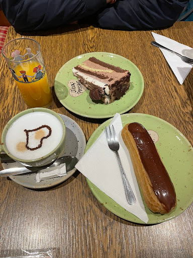 Read moreBelle découverte, Nous sommes venus là le dimanche 27/11 beaucoup de monde partout dans ce charmant village avec le beau temps alors nous cherchions un endroit pour boire une verre et manger un petit truc vite fait, nous avons été surpris par la rapidité du service!!! Avec le monde et notre attablée de 7 nous pensions attendre un moment avec la commande de plusieurs crêpes, mais pas du tout! Tout le monde a adoré, certains ont pris des parts de tartes un vrai délice ! Le personnel au service super franchement nous sommes repartis ravis. Juste une petite suggestion : nous n’avions pas vu qu’il y avait un étage et pensions au départ qu’il serait compliqué de tous pouvoir s’installer ensemble, au final beaucoup de place à l’étage et très bien installé par ailleurs, en repartant j’ai vu un couple qui attendait devant la terrasse en recherchant une place, je leur ai dit qu’il y avait de la place à l’étage, ils étaient contents car eux aussi n’avait pas remarqué qu’il y avait un étage, donc effectivement j’ai vu la petite pancarte après coup indiquant étage ouvert, mais ça serait peut être mieux d’en faire une plus grosse et de la placer peut être sur la terrasse afin d’éviter de perdre quelques clients qui pourraient penser qu’il n’y a pas...