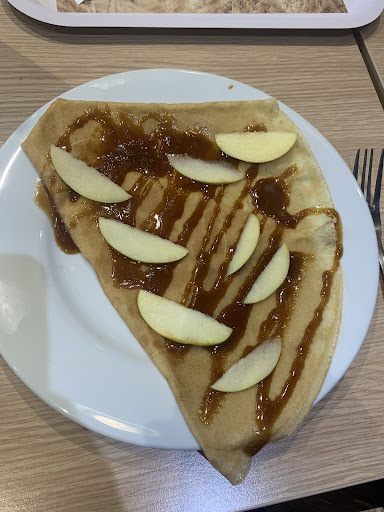 Les crêpes et gaufres qui nous ont été apportées étaient à moitié cuites. Le nutella posé sur les crêpes comme si on avait vomi de la pâte à tartiner. Les assiettes sales y compris en dessous. L'assiette de ma femme était pleine de caramel sous l'assiette. Que dire des couverts à la propreté douteuse que j'ai demandé de changer. La responsable me les a changés avec dédain et en prenant de nouveaux couverts dans un bac qu'elle a ensuite renettoyé avec un vieux chiffon et un spray de vinaigre blanc. Le tout en justifiant qu'elle n'avait pas eu le temps de faire le nettoyage complet. Cette responsable était par ailleurs sale de la toque aux pieds et ne portant son masque que sous le menton. Bref, les règles d'hygiène sont tout sauf respectées. Compte tenu du contexte sanitaire, cela est encore plus inacceptable. Je passerai les bavardages entre le point de vente et celui d'à côté. Pas le temps de servir correctement les clients mais du temps pour se moquer d'eux entre personnel de boutiques... Bref, j'ai perdu 13,95€. Nous avons mangé une des crêpes mais ne souhaitant pas être malade nous sommes partis sans toucher le reste.