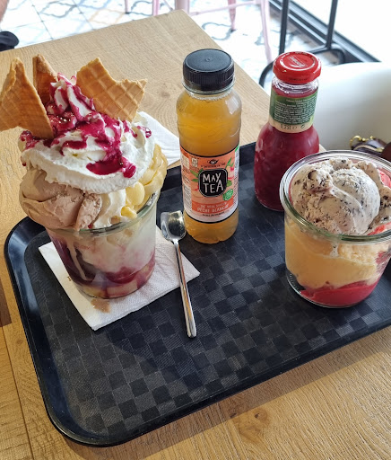 Read moreÉcoeuré par ces glaces industrielles bourrées de sucre et de colorants, et leur prix/qualité plus que douteux, j'en suis parvenu à ne plus en manger. Hier j'ai pénétré pour la première fois dans ce palais des glaces, et là.... J'ai retrouvé l'envie de savourer une coupe de boules aux parfums subtilement dosés, aux couleurs chatoyantes et au GOUT..... ! Oui ce goût qui me faisait cruellement défaut depuis longtemps ! Car d'une part, leur choix de glaces, pâtisseries glacées, desserts gourmands est énorme, et d'autre part, le salon de dégustation vous permet, sur place de ne pas résister à la tentation !!! Merci à vous les petits jeunes qui avez su réveiller mon palais, titiller mes papilles, et m'abreuver de conseils culinaires. Car non seulement ils parviennent à vous faire toucher l'excellence, mais aussi ils prodiguent des conseils sur des associations étonnantes auxquelles je n'aurais pas eu l'audace de penser ! Et ce caramel au beurre salé, cette glace au miel, cette noix de coco 💗. Alors vous aussi, poussez la porte de ce temple de la gourmandise, il ne vous laissera pas de...