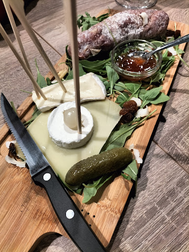 Super concept de ce côté de la ville, mais un bémol dans le service et son organisation ; vraiment dommage... Peu de temps après son ouverture, nous sommes allés "tester" cette nouvelle adresse : cadre sympa et belle météo pour rester dehors. Nous avions finalement trouver une petite table en extérieur (car bcp de monde : gage de belle ambiance!) ; nous avons commandé 1 bière, un rhum arrangé et une grande planchette fromage/charcutt. Même si au final nous avons passé un bon moment (certes long et un peu "agaçant"), nous retenons de cet endroit bcp de "stress" et d'incompétences professionnelles : notre commande a été prise et nous avons été servi au bout d'un temps certain ou d'un certain temps (je ne sais plus...!), pour au final de pas avoir eut la bonne bière commandée, un rhum arrangé sans glaçon (où le serveur s'est juste contenté de nous dire "notre machine à glaçon est en panne donc plus de glaçon et c'est comme ça!" je félicité la répartie du dit serveur, la planche apportée n'était pas le bonne, notre panier à pain 'baigné" dans une sorte de sauce vinaigrette toute sèche, pas de serviette non plus (pour manger avec les doigts c'est un peu compliqué, plus de couverts non plus, on nous a répondu tout est au lavage, de mieux en mieux....! Expériences aux tables voisines : un couple servis (malgré des "relances" au bout de plus de 3/4h (en leur disant qu'ils sont surbookés = les serveurs), tout le monde devait mangé avec ses doigts (plus de couverts ni serviettes), une autre table avait commandé une bouteille à partager et ce n'est qu'au bout de + de 20 minutes que le serveur réagit et emmène enfin un ouvre bouteille (cette dernière avait eut le temps de se réchauffer...). Bref même si l'endroit est vraiment très sympa, le staff est très peu pro (je sais nous sortons de cette crise sanitaire, on ne sait plus "travailler correctement" MDR, on n'est pas du métier....ok j'entends tout cela, MAIS le bon sens, l'organisation et la réflexion devraient s'opérer. Nous avons donc décider de ne pas en rester là et de réitérer notre expérience, en espérant ne plus revivre tout cela et de mettre ENFIN un commentaire digne de cet endroit car il le mérite je pense... Enfin, pensez à former et à professionnaliser davantage l'équipe, vous gagnerez en qualité...