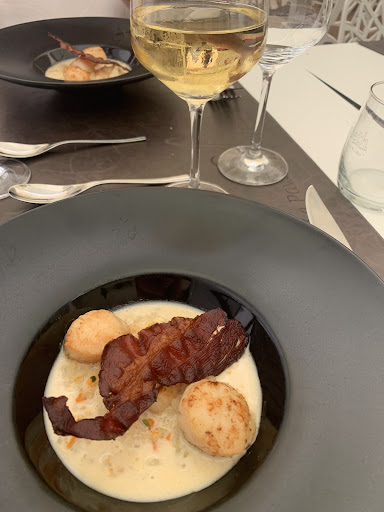 Read moreThe four course + 4 wines tasting menu is a delight. Perfect wine pairing. Exquisite cuisine. Pure pleasure in each perfect bite. The menu starts with a fois gras paired with Pinot gris, served with perfectly toasted bread and a home made chutney. It continues perfectly with risotto with scallops paired with Riesling. The scallops bring the Riesling to a completely different level. Devine pairing. Then to clean the palate you are having a great ginger sorbet. The main course is steak with creamy mashed potatos and baby veggies, all super fresh, seemed home made freshly taken from the garden. This was paired with Pinot noir. Last but not least, the menu ends with epically with a chocolate mouse , ice cream paired with gewuertztraminer. This was a story to live again not a meal.