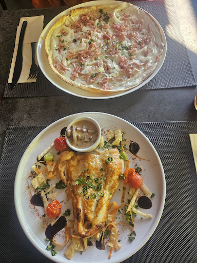 Read moreSi j'avais pu mettre zéro je mettrai 0. Tarte flambée traditionnelle qui dégouliner de l'eau les ingrédients sont posés et on dirait pas cuite avec une odeur désagréable, escalope de poulet à la crème champignon belle présentation sans plus. Musique désagréablement forte.