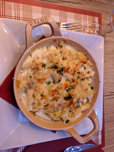 Points négatifs : un seul serveur sympathique qui se démène pour toute la salle (soit une 30aine de personnes) il semble n'y avoir qu'un cuistot.... Résultat + d'une heure d'attente pour avoir nos plats. Alors que tous les clients étaient déjà attablés (seul un couple est arrivé en même temps que nous) concernant la qualité des plats, l'escalope milanaise baignait dans l'huile, les pâtes au gorgonzola sont servies sous forme gratinées avec plus de crème et d'emmental/Gruyère que de gorgonzola. Grande amatrice de ce plat, je n'ai même pas réussi à en manger la moitié. le tout pour une addition salée !