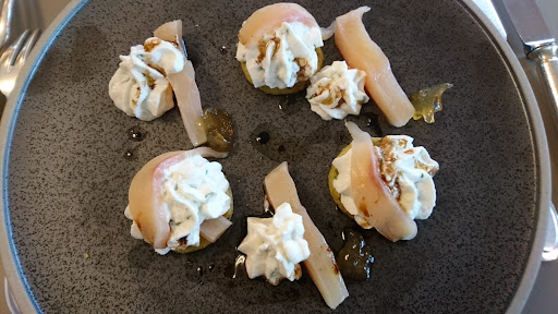 Das Restaurant Perle des Vosges haben wir bei einem Kurztrip in die Vogesen aufgrund der Auszeichnung Bib Gourmand des Guide Michelin für ein Abendessen gewählt. Wir hatten nicht reserviert aber unter der Woche dennoch einen Tisch bekommen. Wir entschieden uns für einen alkoholfreien Aperitif gefolgt von einem 3-Gang Menü. Als Menükarte wurde uns eine laminierte, geknickte DIN A3 Seite gereicht. Diese Art der Präsentation ist nach meinem Empfinden für ein Restaurant mit einer Bib Gourmand Auszeichnung unangemessen. Der Aperitif war fruchtig, nicht zu süß und sehr lecker. Zur Vorspeise hatten wir Graved Lachs an Bibeliskäs. Der Lachs war von guter Qualität, uns fehlte jedoch die Finesse. Als Hauptgang gab es Seezunge an Hummersauce und eine Garnele im Tempuramantel. Auch hier stimmte die Qualität und auch die Machart hat uns überzeugt. Zum Dessert gab es eine Holunder Creme Brulée mit 3 kleinen Kugeln Eis und auch hier stimmte die Qualität und die Machart.