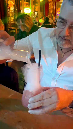 Les cocktails sont bons, la nourriture aussi, mais se faire embêter quand on vapote discrètement tandis que le bar est presque vide, qu'on fait cramer des herbes à côté de moi au chalumeau (très puantes), et qu'ils utilisent eux-mêmes de la glycérine végétale ou du propylène glycol ou de l'azote liquide ou des glaçons de CO2 pour faire de la fumée dans les cocktails, ça n'a aucun sens...