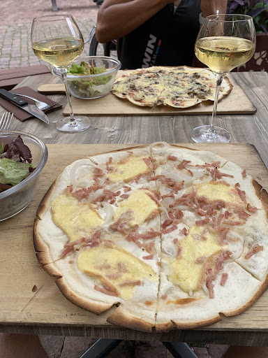 Chaleureux, simple, très bon, rapide, efficace... Arrivés par hasard, -mais le hasard existe-t-il vraiment ?-, pressés par le temps et les ventres affamés des enfants, nous sommes entrés dans ce bel établissement près de l'une des portes de la belle ville de Turckheim, sans Charlotte, la porte de France... et bien le hasard qui n'existe pas a bien, voire très bien fait les choses, car tous nous fûmes rassasiés après nous être régalés... cuisine simple, savoureuse, avec des produits frais... la qualité se passe de prétention... variété de choix, pour tous les goûts, des salades, viandes, poissons aux pizzas et tartes flambées... de bons desserts... du fait maison, avec passion, un service rapide, efficace... comme disait d'Ormesson, c'était bien, et surtout, c'était bon... une maison sérieuse, belle, agréable... du baume au ventre pour affronter la pluie et le froid, et même les monstres s'il le faut, qu'ils soient à visages humains ou non, commerçants alsaciens ou pas, avec ou sans sourire... la pire monstruosité, en nous-mêmes tapie comme Bernard, n'est-elle pas le chauvinisme ou plus simplement... la bêtise ? Le pire des virus, et pas de vaccin contre cela... le bistouri ! Délogeons-le, ce faux ami héréditaire ! Merci chef, pour ce bon moment, qui brûle encore et nous éclaire ! ... l'estomac ne tourne pas ici les talons, et l'estomac d'ailleurs, fait l'étalon, qui reviendra chez vous au galop... Une table amie, stamm dmirable ! BRAVO... en alsacien, on frappe des mains,...