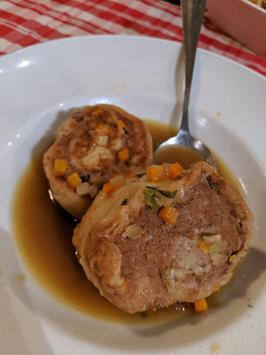 Read moreWe chose this cute place for our last meal of our anniversary trip to Europe, and it was not a mistake. The restaurant was warm and cozy inside and very nicely decorated. Our waitress didn't speak English and we only know maybe four words of Francais, but it worked out well! I ordered the fleischschnacka, and it came in a very flavourful broth. I think that's how it's supposed to be, although my only other time ordering this dish had come plated dry with tomatoes on top and potatoes on the side. I much prefer the saucy version. They were really good, except one of the two was mostly pasta and not enough meat. It came with a small green salad that was dressed with a very nice sweetish dressing. My husband ordered the pork cheeks in pinot noir sauce and it was soooo good! Superbly tender and sweet and savory. He had a choice of fries or spaetzle, and of course, we got the spaetzle. Finished the meal with a couple of espressos. It was the perfect last meal.