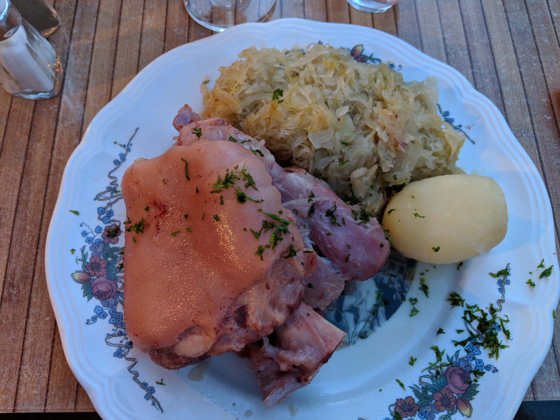 Read moreA very nice traditional restaurant with traditional dishes from Alsace. We tried 3 dishes made of Munster cheese, so good. Our favourite was the jambonneau (pig knuckle that was quite fatty but with still enough meat to enjoy) because it came with a potato gratin with Munster, a layer of ham and cream that makes the whole difference. The Strudel (chef version) is Munster with potatoes, sausage all in pastries - nice but too doughy. The last Munster dish had more of a mash texture with ham and Munster that was our...