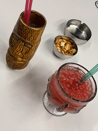 L’expérience aurait pu bien se passer si ma partenaire ne faisait pas un début d’allergie, je leur est donc demandé si les pop-corn servis n’ont pas était en contact avec des arachides (ma partenaire est allergique au cacahuètes), la réponse fut non. Après recherche sur Google nous avons compris que la source de cet allergie était la liqueur de pêche contenue dans son cocktail.