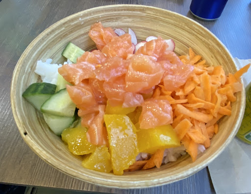 Read moreNous sommes venus manger ici, car il était noté 4,8. Je suis énormément déçu j’ai commandé un poke bowl mais celui-ci n’en était pas un . Le riz était mal cuit, ni même vinaigré les légumes n’étaient pas marinés. Il s’agissait simplement de chou et de carottes non assaisonné comme à la cantine. Le saumon était de mauvaise qualité avait des grosses rayures blanches dans la chair. Même en rajoutant de la sauce l Une question se pose pourquoi faire des poké bowl quand on ne sait pas les faire. mieux vaut se concentrer sur des plats que l’on maîtrise plutôt que de tromper le client avec un plat non maîtrisé.