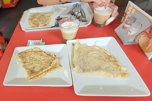 Read moreC'est propre, c est simple. Le personnel est aimable. L ambiance est plutôt familiale. Nous sommes en juillet. Sinon,... Peu de choix et qualité médiocre. Non pas par la façon de cuisiner mais par les aliments bruts pour cuisiner. Exemples : cuisse de poulet de batterie. Cet animal n est ni fermier et a du rêver de vivre en plein air. Rêve non réalisé, c est sûr. Petit morceau entre le coquelet et le poulet classique. En même temps, vu la qualité, c est largement suffisant. Les légumes, on peut s attendre à de beaux légumes de saison. Hé non ! Ratatouille en boîte, digne des cantines de collège des années 80. Carottes vichy et haricots verts parsemés de poudre d ail séchée. Banane plantin qui baigne dans le gras. Légumes verts inconnus qui seraient de la famille des courges que personne ne se risque à essayer. Même pas peur, j en prend pour goûter. Et je comprends mieux que personne ne s y risque. Normal, c est vraiment mauvais. Le riz était bon. Je ne mange pas de frites mais j ai vu que c était des allumettes. Ma fille a pris un steak haché. Rien de fantastique. Les desserts : mini part d un gâteau au chocolat décongelé pour elle et pour moi, crème brûlée qui était bonne. C était et ça doit rester du dépannage. Je pense sincèrement qu'il faut sauver l entreprise et que le personnel fait ce qu il peut avec un tout petit budget. Ils ont du mérite mais c est franchement, très moyen. La prochaine fois, un sandwich chez Paul juste en face fera...