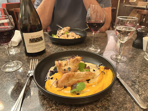 Read moreKudos to the Chef whose Suprême de volaille with a mousse-like carrot purée was sublime. And talk about imagination…our dessert was oven-roasted apricots seasoned with rosemary and accompanied by a sensational cassis sorbet. To die for.