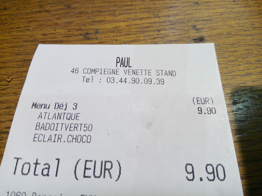 Read moreJe trouvais déjà les menus un peu cher jusque là, sachant que Paul n'est plus la seule franchise à utiliser du pain au pavot et des desserts pâtissiers. Constatant la taille des sandwichs qui rétrécie peu à peu jusqu'à atteindre maintenant les dimensions d'une grosse tartine, on peut déjà remettre un peu en question leur rapport qualité prix. Mais là j'ai découvert une autre astuce formidable, il faut désormais payer pour s’asseoir. On est même pas servis à table puisque la vendeuse se contente de poser le plateau sur le comptoir. C'est donc 1€ pour avoir l'immense privilège de manger sont casse croûte assis. Et on est dans une galerie marchande de grande surface, je le rappelle , pas sur...