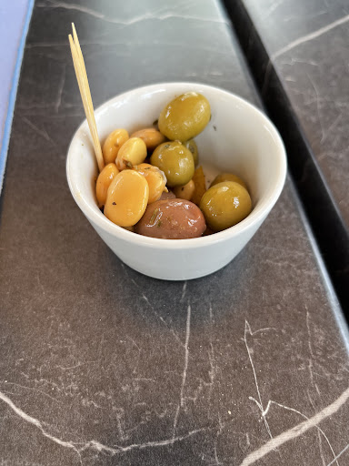 Upon arrival, we were welcomed with a starter of olives and bread, a simple yet pleasant beginning to our meal. Opting for the 22-euro menu, we were served beef with fries. While the dish was enjoyable, it did not stand out as exceptional. The beef was well-cooked, and the fries were satisfying, though neither were particularly memorable.
