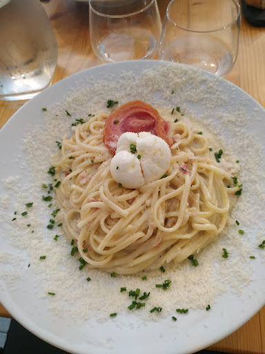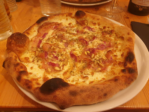 Question cadre c'est la cathĂ©drale qui fait office de fond ... AgrĂ©able le soir l'Ă©tĂ©, mais la terrasse situĂ©e entre la rue et le trottoir n'est pas un gage de tranquillitĂ© ou d'intimitĂ© ... L'accueil et le service souriants, la serveuse radieuse, le serveur trĂšs pro. La cuisine assez rapide. La carte trĂšs axĂ©e pizzas (classĂ©e en deux listes, base tomates et base crĂšme) propose Ă©galement trois plats de pĂątes mais les associations un peu surprenantes avec pour exemple une association truffe noire et cĂšpes ... Pas de menu enfants mais il est possible de se faire servir une assiette de pĂątes avec sauce tomates et burrata. Les pizzas sont bien gonflĂ©es, et probablement les meilleures de la rĂ©gion mais la cuisson n'est pas parfaite, beaucoup de pizzas ce soir lĂ sont servies avec des bords TRĂS cuits et la mienne, Ă la crĂšme est superbe d'apparence mais le fond est mou, et tout le centre en "bouillie" ... Probablement une cuisson trop violente et pas assez longue, mais je ne suis pas pizzaiolo. CelĂ dit les saveurs sont excellentes et l'Ă©quilibre bon. Le moelleux au chocolat bon mais pas exceptionnel... A noter des jus de fruits de qualitĂ©, ainsi que de trĂšs bonnes glaces, dont une dĂ©licieuse Ă la verveine. Des petites imperfections mais assurĂ©ment l'une des meilleures pizzerias Ă ...